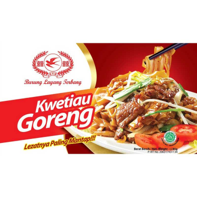 Burung Layang Terbang Kwetiau Goreng Instan 85 g adalah sebuah produk kwetiau instan varian goreng. Terbuat dari adonan terpung beras yang dicampur dengan bahan lainnya. Dibuat dengan menggunakan tepung beras, menjadikan kwetiau dapat dijadikan makanan pokok pengganti nasi. Diproduksi secara higienis dan terlah bersetifikasi Halal dan izin P-IRT. Kwetiau memiliki tekstur yang lembut dan kenyal ketika digigit. Kwetiau memiliki potongan pipih dan lebar dan warna putih pucat dari tepung beras. Kwetiau dikemas dalam ukuran 85 gram yang lengkap dengan bumbu di dalamnya. Dapat disajikan dalan waktu singkat, sehingga cocok disantap saat sibuk dan lapar. Segera miliki persediaan Burung Layang Terbang Kwetiau Goreng Instan 85 g dan rasakan kelezatan kwetiau goreng dalam waktu singkat.