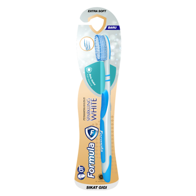Formula Sikat Gigi Sparkling White adalah sikat gigi dengan desain khusus untuk membersihkan gigi dengan maksimal. Bulu sikat white active spiral memaksimalkan pasta gigi dalam membersihkan gigi. Pegangan sikat dilapisi karet agar tidak licin ketika menggunakannya. Sangat aman dan ampuh membersihkan gigi.
