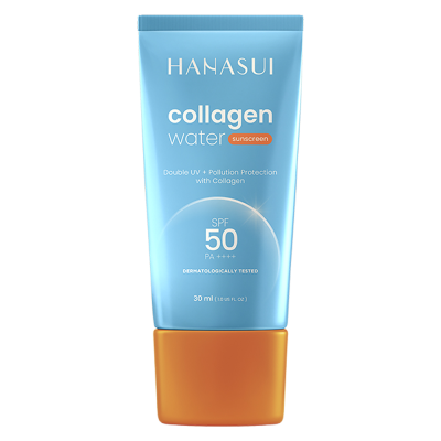 HANASUI Collagen Water Sunscreen SPF 50 PA++++ 30 ml adalah krim tabir surya yang mengandung Broad Spectrum Protection, lebih optimal menjaga kulit dari sinar UV. Memberikan perlindungan Optimal terhadap kulit dari paparan sinar UVA yang dapat menyebabkan penuaan dini pada kulit. Mengandung Mugwort extract, Vitamin E dan Sodium Hyaluronate. Formula ringan dan cepat meresap, tidak lengket dan tidak menimbulkan whitecast. Tersedia dalam kemasan tube 30