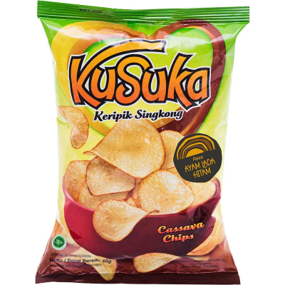 KuSuka Keripik Singkong Ayam Lada Hitam 60 g merupakan produk camilan keripik singkong dengan varian rasa bumbu tabur ayam lada hitam persembahan dari KuSuka. Terbuat dari singkong pilihan yang diolah secara higienis untuk menghasilkan keripik singkong yang enak dan berkualitas. Singkong KuSuka dipanen pada usia yang sama, kemudian diiris dengan ketebalan yang sama dan diproses dengan teknologi modern dengan penambahan bumbu-bumbu dari resep tradisional Indonesia sehingga menjadikan Kusuka sangat renyah dan nikmat. Rasa ayam lada hitam yang lezat berpadu dengan keripik yang renyah menjadikan KuSuka Keripik Ayam Lada Hitam 60 g teman yang pas untuk menemani saat bepergian atau di waktu santai. Meriahkan perjalanan, waktu santai dan kumpul bersama dengan KuSuka Keripik Ayam Lada Hitam 60 g.