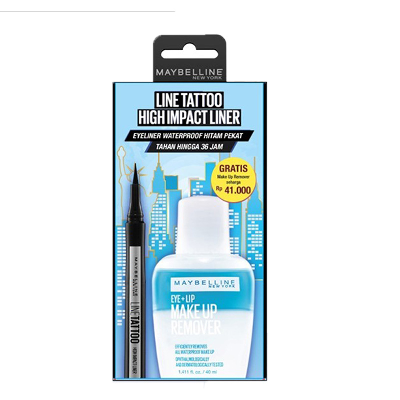 Maybelline Line Tattoo High Impact Liner merupakan eyeliner waterproof yang dapat memberikan rampilan mata yang cantik dan menawan. Eyeliner cair berbentuk spidol ini waterproof dan tahan hingga 36 jam, serta dapat memberikan hasil warna hitam intens.
