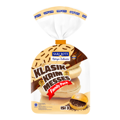 Merupakan roti dengan isi krim messes yang manis. Anda dapat menyantap roti isi krim cokelat messes ini sebagai santapan pengganti karbohidrat pada nasi. Nikmati kelezatan roti krim messes ini di sela-sela aktivitas Anda yang padat. Manisnya krim messes ini dapat Anda nikmati bersama, karena dalam 1 kemasan terdapat 3 buah roti yang bisa Anda sharing.