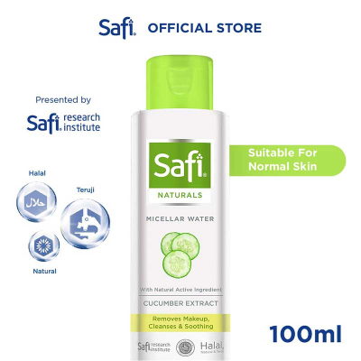 Safi Naturals Micellar Water Cucumber Extract 100 ml adalah pembersih wajah berbahan dasar air yang lembut dengan kandungan Cucumber Extract. Membersihkan riasan wajah serta kotoran pada wajah dengan mudah. Cocok digunakan untuk kulit normal. Hadir dengan ekstrak timun yang dapat membantu dan menjaga kelembaban wajah anda. Menjaga wajah agar tetap sehat dan terlihat segar.
