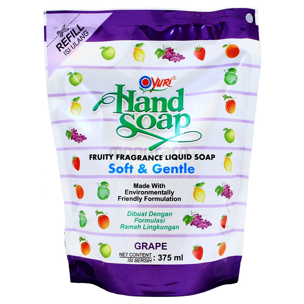 YURI Hand Soap Pouch Grape 375ml adalah cairan pencuci tangan yang sangat efektif membersihkan kuman yang menempel pada tangan. Dengan busa yang lembut dan terasa nyaman ditangan, sehingga tangan tetap lembut dan halus. Sabun cuci tangan ini dapat digunakan sebelum dan sesudah makan atau ketika kita akan memulai aktivitas atau mengakhirinya. Karena formulanya yang aman, sabun cuci tangan ini dapat juga digunakan oleh anak-anak.