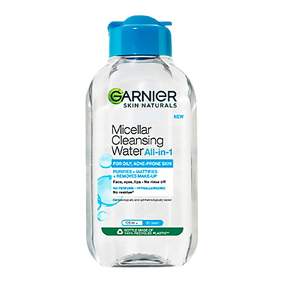 GARNIER Micellar Cleansing Water Oily Acne Prone Skin Blue 125 ml adalah pembersih wajah yang mengandung molekul Micelles yang mampu mengangkat kotoran dan minyak seperti magnet, tanpa perlu dibilas. Teksturnya ringan seperti air, lembut membersihkan kotoran, makeup serta menghilangkan minyak berlebih dari wajah, mata, dan bibir. Teruji secara dermatologi. Diformulasikan agar tidak lengket di wajah, tidak berminyak, dan tanpa parfum. Cocok untuk kulit berminyak dan berjerawat. Tersedia dalam kemasan botol 125 ml.